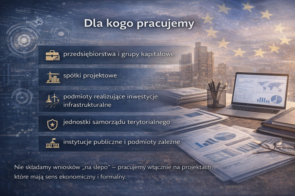 Pracujemy z firmami oraz podmiotami publicznymi realizującymi inwestycje wymagające rzetelnej oceny ekonomicznej i formalnej.